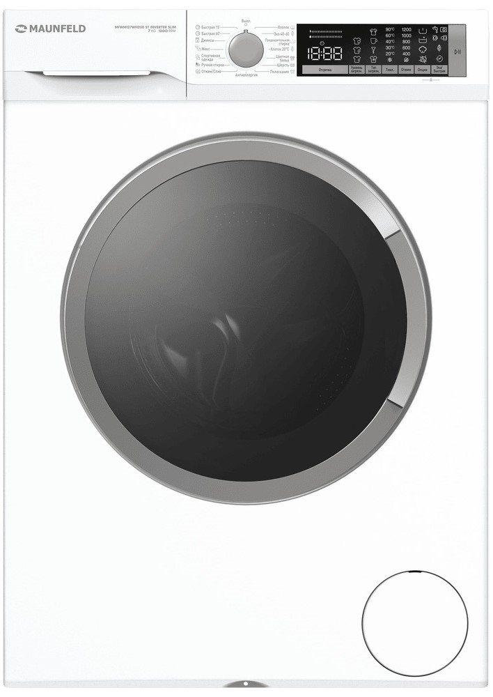 Стиральная машина Маунфилд MFWM127WH200 ST INVERTER SLIM выпущена в стандартной конфигурации — устанавливается отдельно, поэтому рекомендуем заранее выделить для нее место в квартире. Благодаря классической фронтальной загрузке она привычна и удобна даже для тех, кто не очень разбирается в технике. За счет небольшой глубины данную модель предпочитают владельцы небольших квартир, студий. Вместительность барабана средняя, поэтому ее хватит и для одиночек, и для семей с детьми. Максимальная загрузка: 7 кг.