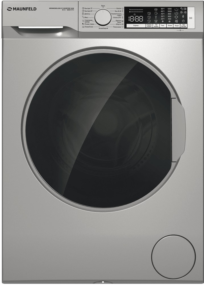 Стиральная машина Маунфилд MFWM128SL300 ST INVERTER SLIM выпущена в стандартной конфигурации — устанавливается отдельно, поэтому рекомендуем заранее выделить для нее место в квартире. Благодаря классической фронтальной загрузке она привычна и удобна даже для тех, кто не очень разбирается в технике. За счет небольшой глубины данную модель предпочитают владельцы небольших квартир, студий. Вместительность барабана средняя, поэтому ее хватит и для одиночек, и для семей с детьми. Максимальная загрузка: 8 кг.
