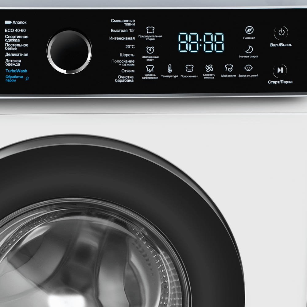 Вы можете отложить запуск, если хотите сэкономить на тарифах и включить машинку ночью, либо если планируете развесить белье сразу после возвращения работы и не ждать, пока закончится цикл. На панели управления отображаются разнообразные индикаторы, чтобы было проще следить за процессом, например: хода программы, времени до окончания стирки, выбора дополнительных функций, блокировки дверцы, блокировки от детей, уровня загрязнения, отсрочки старта. Скорость отжима достигает 1400 оборотов в минуту. Функцию отжима можно будет отключить вручную, если она вам не нужна.