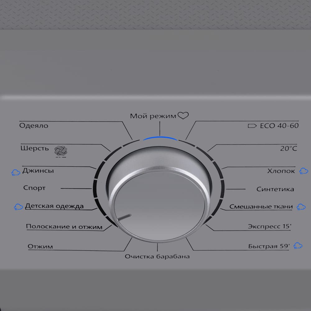 Электромеханическое управление удобно и понятно. Для выбора программ используются кнопки, поворотный программатор. Количество режимов для стирки разных типов белья: 16.