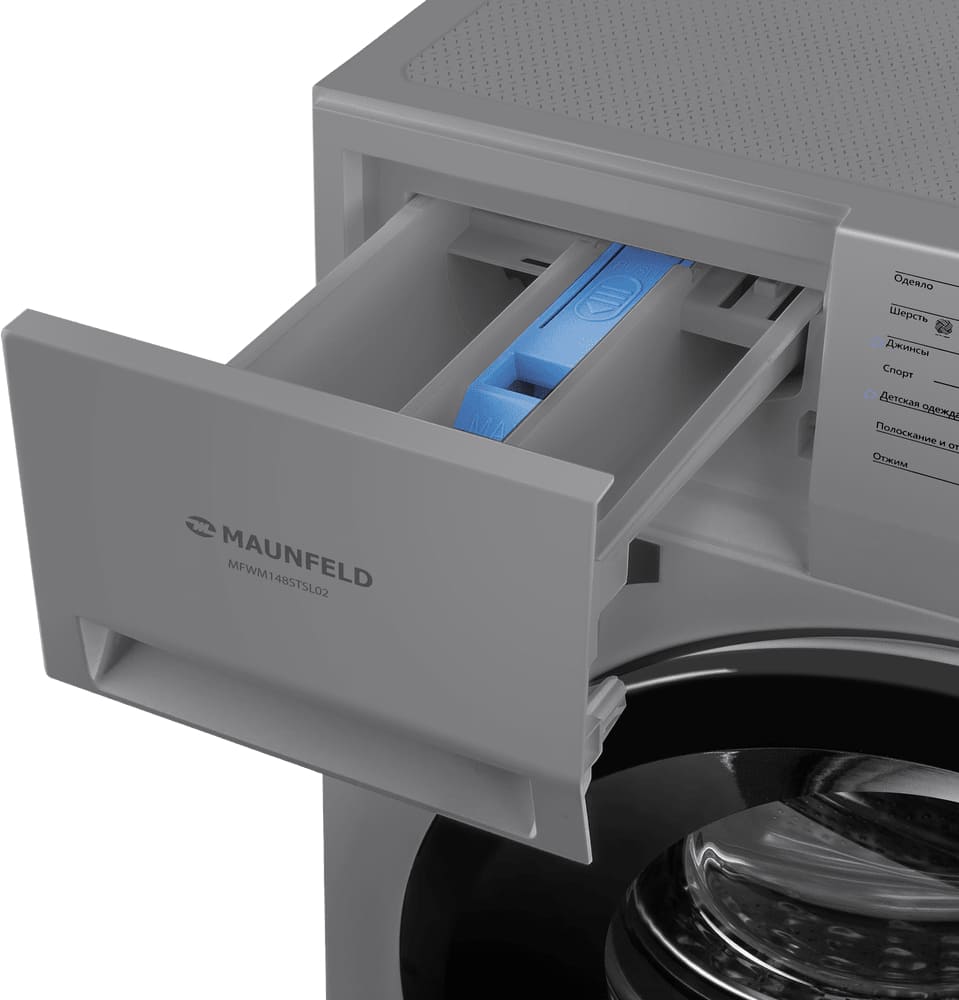 Стиральная машина Маунфилд MFWM148STSL02 выпущена в стандартной конфигурации — устанавливается отдельно, поэтому рекомендуем заранее выделить для нее место в квартире. Благодаря классической фронтальной загрузке она привычна и удобна даже для тех, кто не очень разбирается в технике. За счет небольшой глубины данную модель предпочитают владельцы небольших квартир, студий. Вместительность барабана средняя, поэтому ее хватит и для одиночек, и для семей с детьми. Максимальная загрузка: 8 кг.