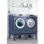 Второй способ — установка отдельно стоящей стиральной машины под раковиной в ванной — несколько труднее, ассортимент таких моделей также намного меньше. Установка раковины производится обычно на высоте 90 см, так что при этом необходим выбор раковины высотой не более 10 см (так называемая «Кувшинка» с горизонтальным сливом) и компактной стиралки уменьшенной высоты для предотвращения их соприкосновения, особенно во время отжима. Стиральная машина, кроме того, не должна выступать за край раковины, чтобы не допустить попадания влаги. Для удобства пользователей стиральная машина и раковина могут продаваться в комплекте.