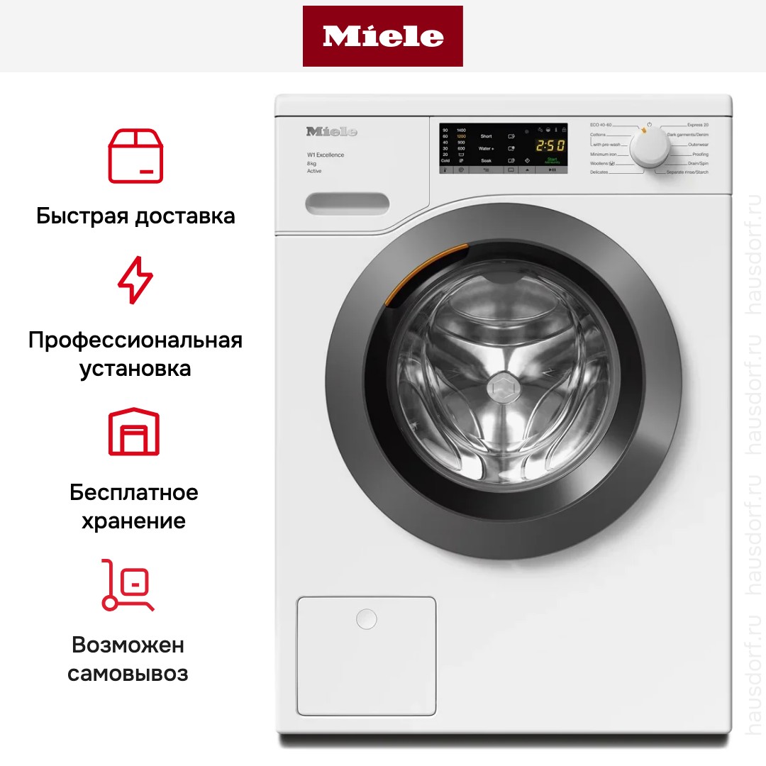Цвет этой стиральной машинки — белый лотос. Ее можно установить в колонну с сушильной машиной, чтобы оптимизировать рабочее пространство и сделать удобный «прачечный» уголок. Обычно для этого необходимы специальные соединительные элементы — ищите их в разделе «Аксессуары». В данной модели Miele используется барабан HoneyComb. Мотор: ProfiEco. Благодаря ему машина работает тише, потребляет меньше электроэнергии, сохраняя при этом необходимую мощность.