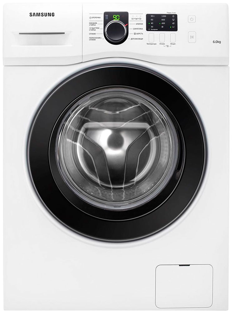 Стиральная машина Самсунг WF 60 F1R2F2W/DLP выпущена в стандартной конфигурации — устанавливается отдельно, поэтому рекомендуем заранее выделить для нее место в квартире. Благодаря классической фронтальной загрузке она привычна и удобна даже для тех, кто не очень разбирается в технике. За счет небольшой глубины данную модель предпочитают владельцы небольших квартир, студий. В барабан помещается не так много вещей за один раз, но тем, кто не любит копить вещи или просто мало стирает, будет достаточно. Максимальная загрузка: 6 кг.