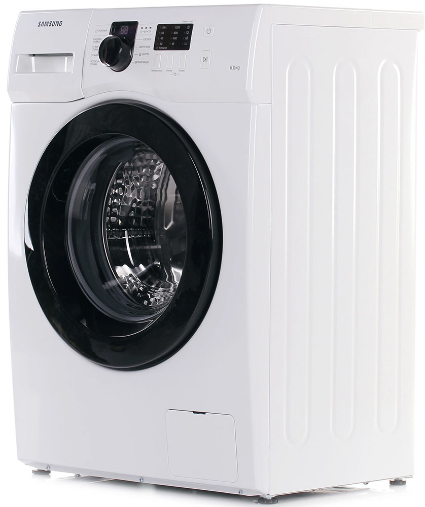Стиральная машина Самсунг WF60F1R2F2W выпущена в стандартной конфигурации — устанавливается отдельно, поэтому рекомендуем заранее выделить для нее место в квартире. Благодаря классической фронтальной загрузке она привычна и удобна даже для тех, кто не очень разбирается в технике. За счет небольшой глубины данную модель предпочитают владельцы небольших квартир, студий. В барабан помещается не так много вещей за один раз, но тем, кто не любит копить вещи или просто мало стирает, будет достаточно. Максимальная загрузка: 6 кг.