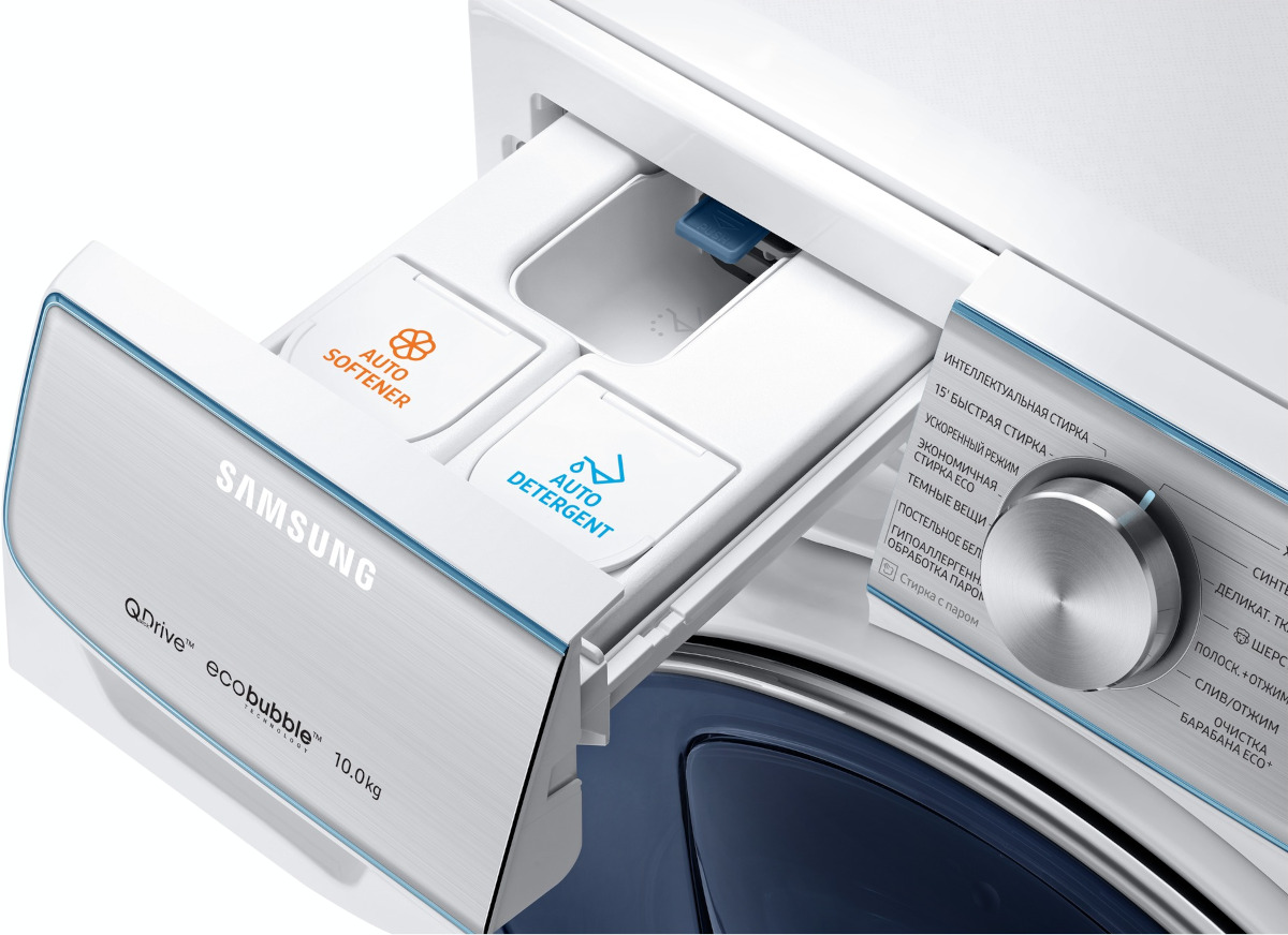 Технология Eco Bubble™ (превращает моющее средство в активную пену, позволяя ей быстрее проникать в ткань и улучшая качество стирки)