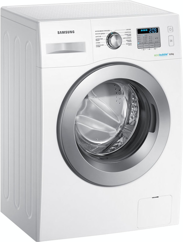 Стиральная машина Самсунг WW 60H2230EW выпущена в стандартной конфигурации — устанавливается отдельно, поэтому рекомендуем заранее выделить для нее место в квартире. Благодаря классической фронтальной загрузке она привычна и удобна даже для тех, кто не очень разбирается в технике. За счет небольшой глубины данную модель предпочитают владельцы небольших квартир, студий. В барабан помещается не так много вещей за один раз, но тем, кто не любит копить вещи или просто мало стирает, будет достаточно. Максимальная загрузка: 6 кг.