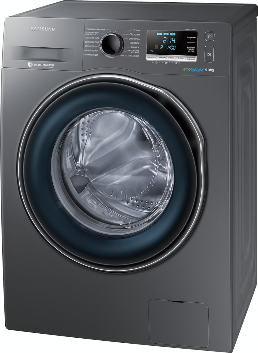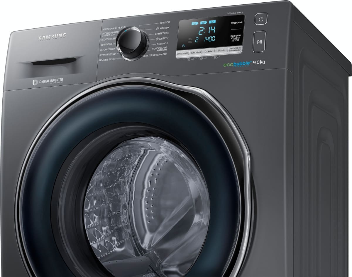 Цвет этой стиральной машинки — темное серебро. В данной модели Samsung используется барабан Diamond. Мотор: Инверторный. Благодаря ему машина работает тише, потребляет меньше электроэнергии, сохраняя при этом необходимую мощность.