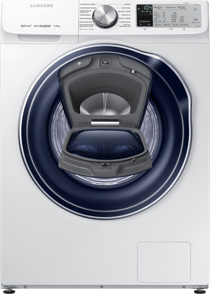Стиральная машина Самсунг WW 90M64LOPA AddWash выпущена в стандартной конфигурации — устанавливается отдельно, поэтому рекомендуем заранее выделить для нее место в квартире. Благодаря классической фронтальной загрузке она привычна и удобна даже для тех, кто не очень разбирается в технике. Вместительность барабана средняя, поэтому ее хватит и для одиночек, и для семей с детьми. Максимальная загрузка: 9 кг.