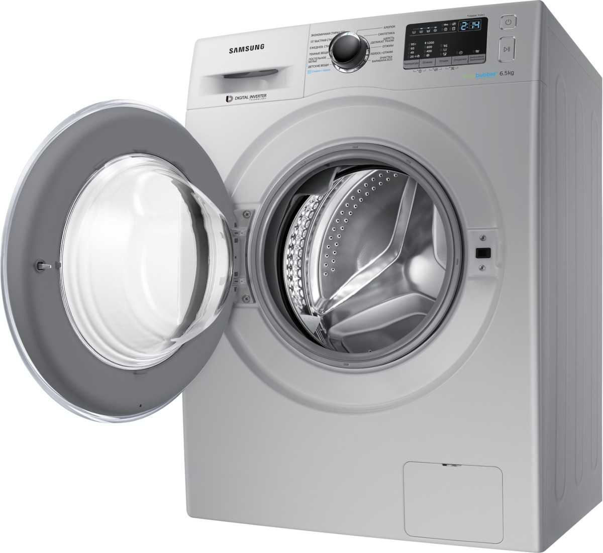 Цвет этой стиральной машинки — серебристый. В данной модели Samsung используется барабан Diamond. Мотор: Инверторный. Благодаря ему машина работает тише, потребляет меньше электроэнергии, сохраняя при этом необходимую мощность.