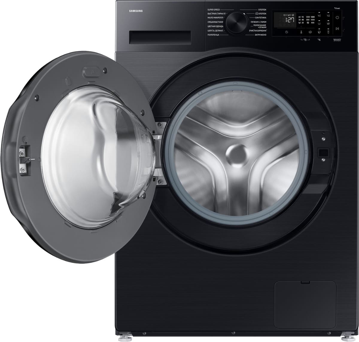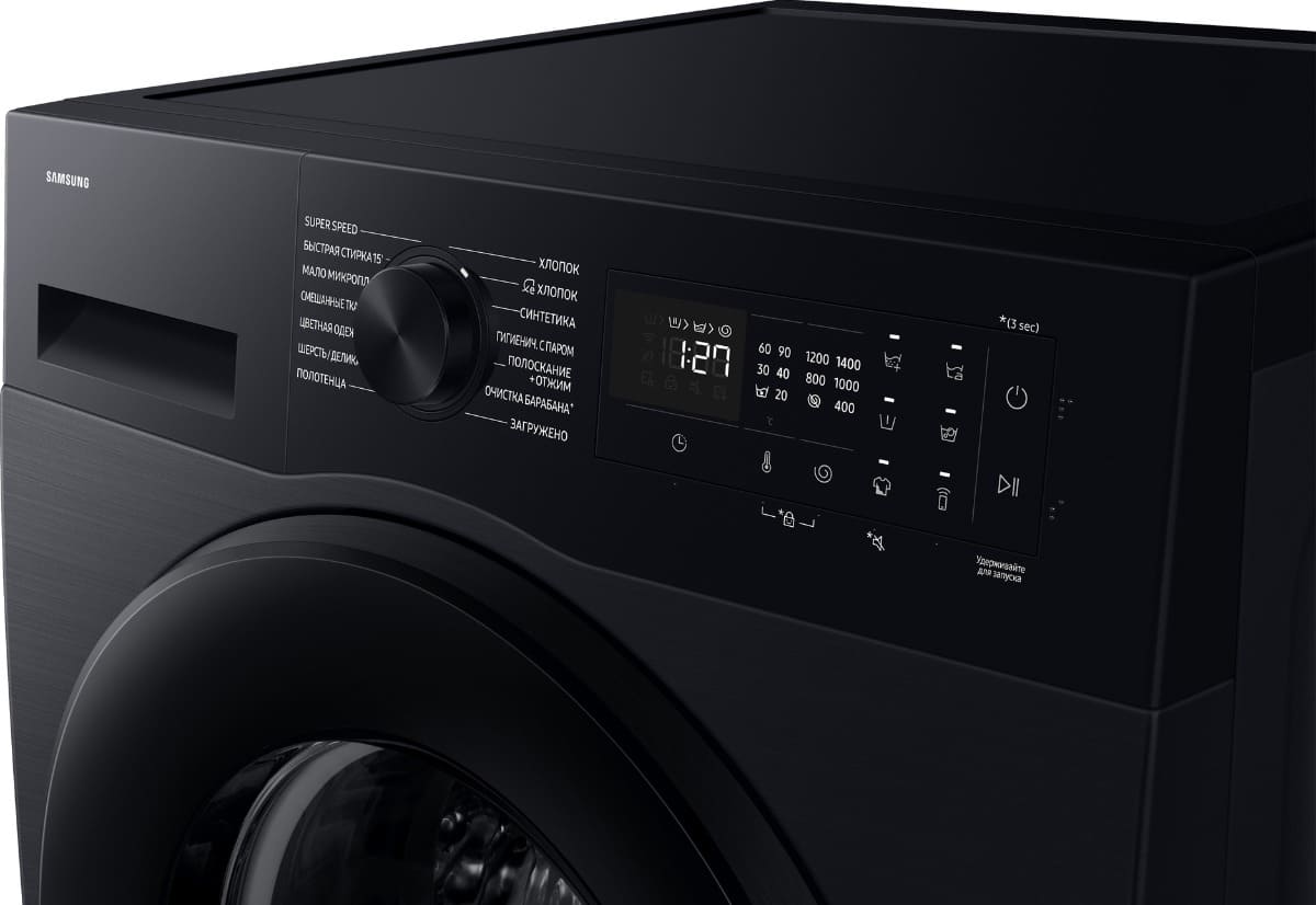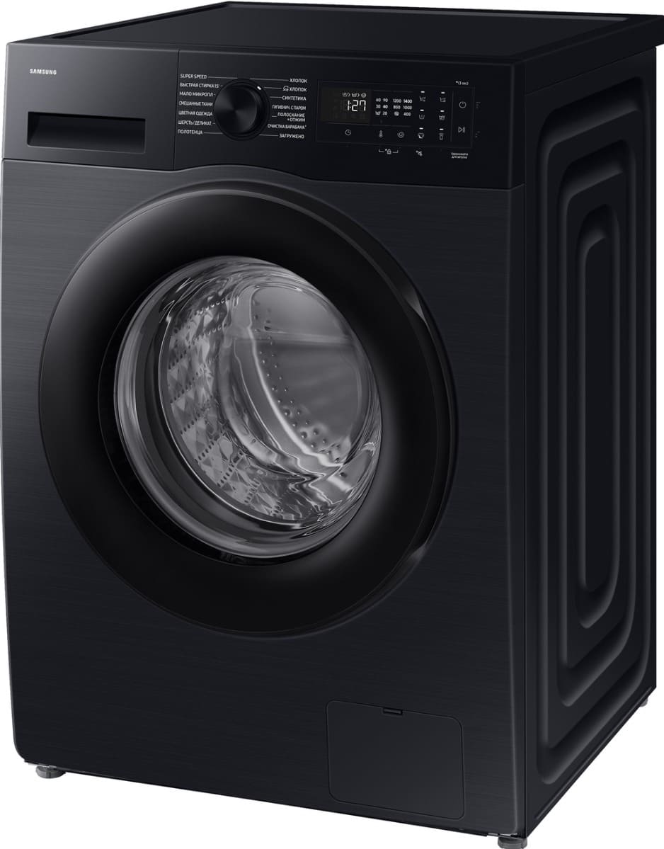 Цвет этой стиральной машинки — черный. Ее можно установить в колонну с сушильной машиной, чтобы оптимизировать рабочее пространство и сделать удобный «прачечный» уголок. Обычно для этого необходимы специальные соединительные элементы — ищите их в разделе «Аксессуары». В данной модели Samsung используется барабан Diamond. Мотор: Инверторный. Благодаря ему машина работает тише, потребляет меньше электроэнергии, сохраняя при этом необходимую мощность.