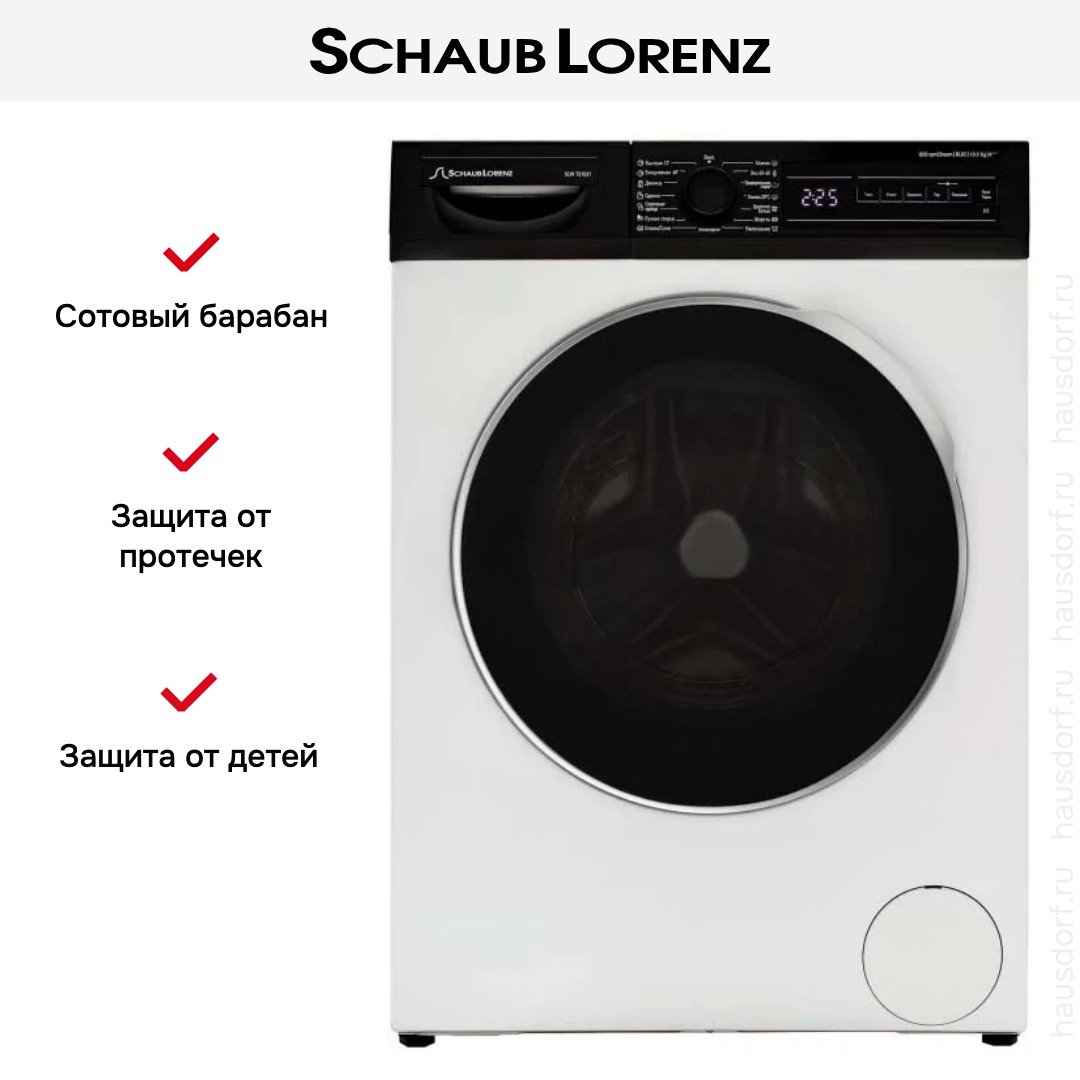Цвет этой стиральной машинки — белый. В данной модели Schaub Lorenz используется барабан сотовый. Мотор: Инверторный. Благодаря ему машина работает тише, потребляет меньше электроэнергии, сохраняя при этом необходимую мощность.