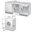 В отличие от другой встраиваемой техники, круглая дверца стиральных машин редко крепится к мебельному фасаду, она способна открываться отдельно. При размещении требуется оставлять зазор между задней стенкой машины и стеной помещения для свободного размещения шлангов. Нижняя часть стиралки закрывается цоколем, а верхняя — столешницей: крышку машины при этом иногда можно снять.