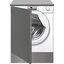 Полностью встраиваемые стиральные машины — один самых распространенных типов, особенно в условиях ограниченного пространства. Они размещаются в тумбах, скрываясь за мебельными фасадами и позволяя таким образом сохранить единство стиля. Вместимость этих устройств варьируется в пределах от 5 до 12 кг белья. Высота их составляет 84-85 см, что является стандартным значением, ширина равна 60 см, глубина же может быть различной. Размещают подобные модели обычно в кухне, а не в ванной, поскольку та имеет меньшую площадь.