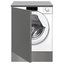 В отличие от другой встраиваемой техники, круглая дверца стиральных машин редко крепится к мебельному фасаду, она способна открываться отдельно. При размещении требуется оставлять зазор между задней стенкой машины и стеной помещения для свободного размещения шлангов. Нижняя часть стиралки закрывается цоколем, а верхняя — столешницей: крышку машины при этом иногда можно снять.