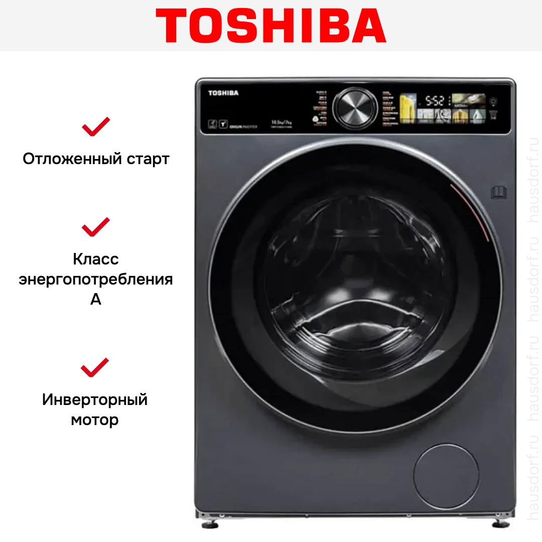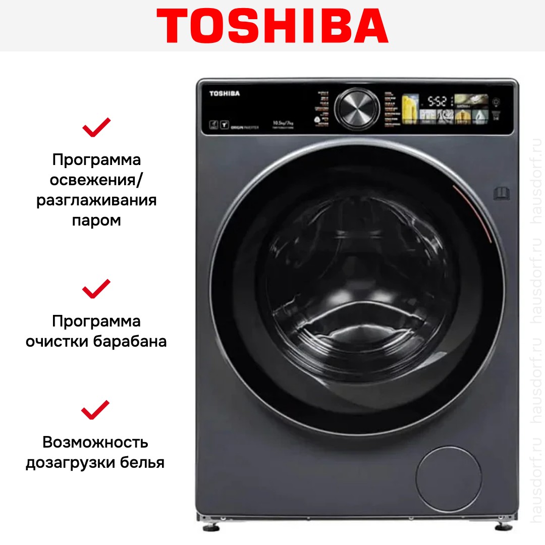 Стиральная машина Тошиба TW-T25BZU115MWRU(MG) выпущена в стандартной конфигурации — устанавливается отдельно, поэтому рекомендуем заранее выделить для нее место в квартире. Благодаря классической фронтальной загрузке она привычна и удобна даже для тех, кто не очень разбирается в технике. В барабан помещается большое количество белья, что подойдет большим семьям или тем, кто часто стирает объемные вещи — постельное белье, верхнюю одежду. Максимальная загрузка: 10.5 кг.