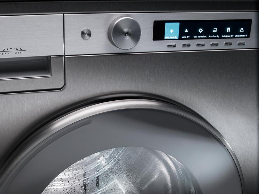 Электронное управление удобно и понятно для людей разного поколения. Контролировать процесс можно с помощью дисплея, на который выводится основная информация. Когда машинка прекратит работу, вы услышите специальный сигнал. Другие полезные опции, которые помогут вам: система сенсорного измерения влажности Sensidry.