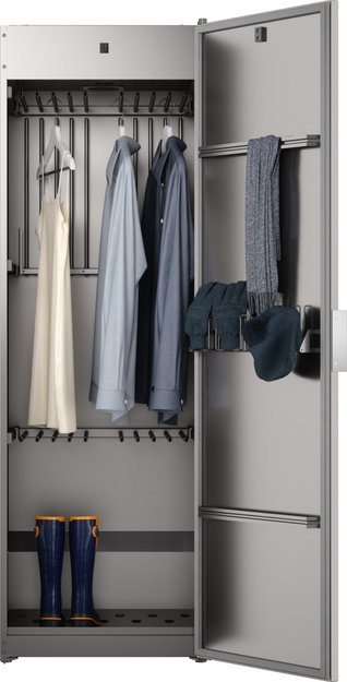 Воздух снаружи поступает в камеру, проходя через нагреватель, обволакивает одежду, вытягивает влагу — и уже влажный воздух выводится через специальный шланг.