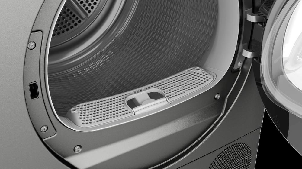 AntiVibration Design в сушильных машинах Bosch — особая конструкция боковых стенок, которая разработана для уменьшения уровня шума и максимальной защиты от вибрации. Благодаря форме стенок жесткость корпуса увеличивается, и машина вибрирует намного меньше даже при сушке на высокой скорости.