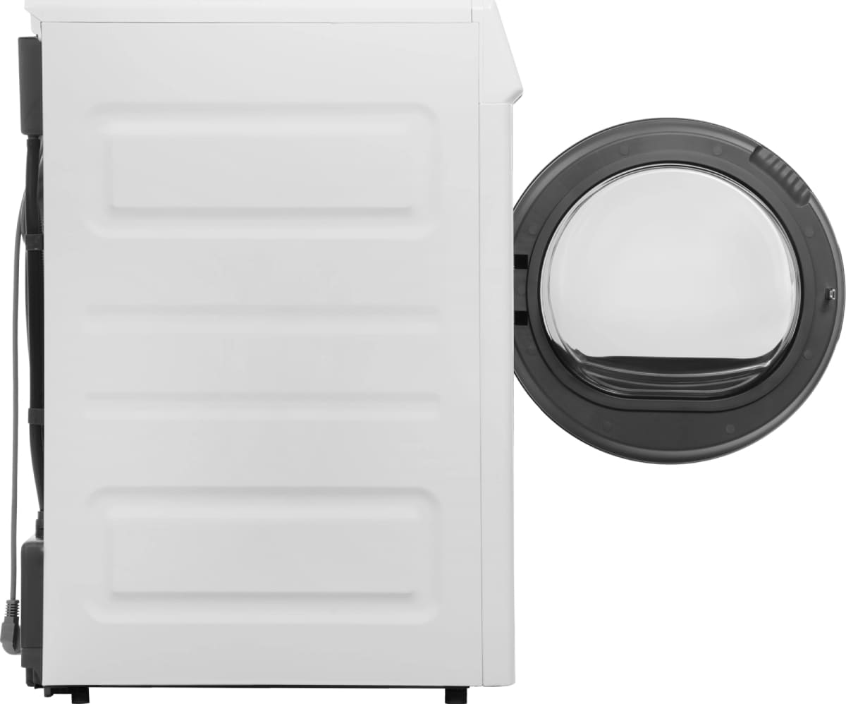 В барабан единовременно можно загрузить 10 кг. Его реверсивное вращение предотвращает сбивание вещей в ком и образование дисбаланса. Цвет корпуса — белый. Конструктивные решения, которые выделяют эту модель: регулируемые ножки, загрузочный люк увеличенного диаметра.