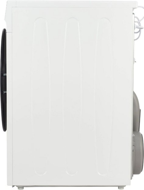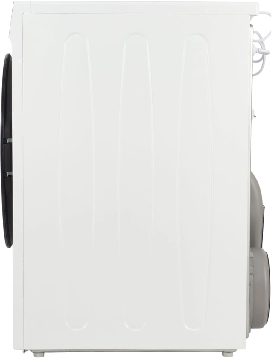 В барабан единовременно можно загрузить 10 кг. Подсветка — не только красивая, но и функциональная деталь, так как дает хороший обзор, как проходит сушка. Цвет корпуса — белый. Конструктивные решения, которые выделяют эту модель: регулируемые ножки.