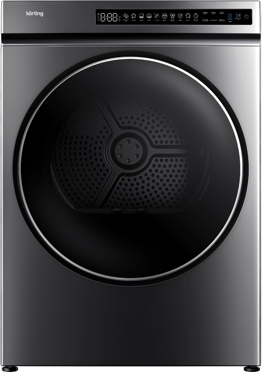 Сушильная машина Korting предназначена для домашнего использования, поэтому имеет стандартные габариты и большое разнообразие программ. Так как она устанавливается отдельно, нужно заранее найти достаточно места в помещении. Особенности, на которые нужно обратить внимание при размещении: возможность установки в колонну. Колонна — это название для совместной установки со стиральной машиной друг на друга, обычно для этого нужен специальный крепежный элемент.