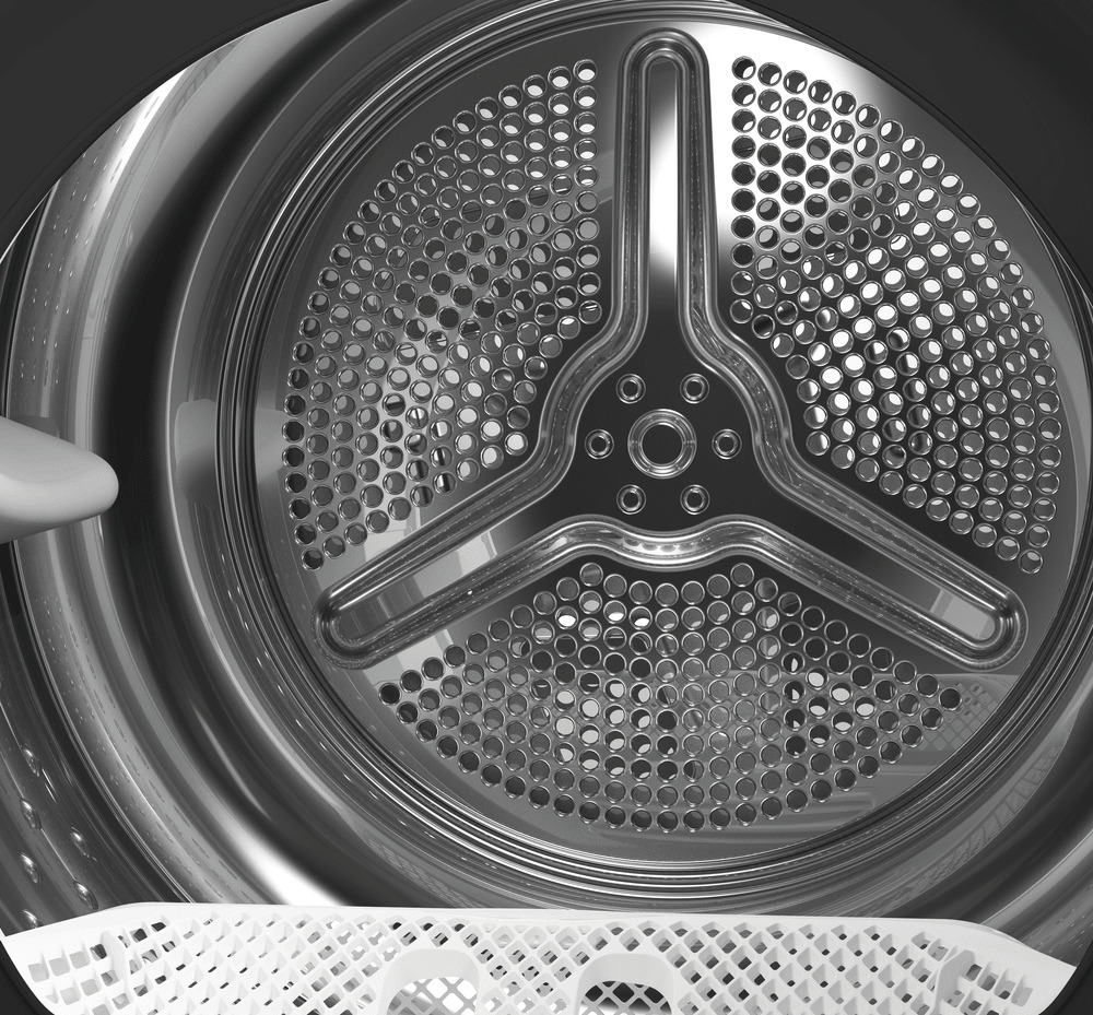 Тип сушки белья в данной модели — тепловой насос. Благодаря этому воздух поступает в барабан уже теплым, что ускоряет работу.