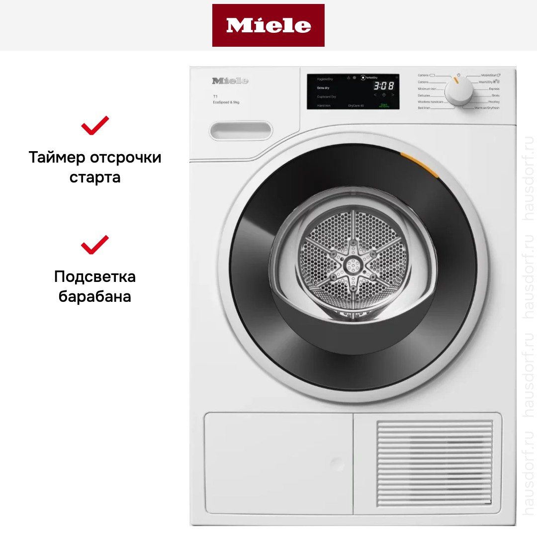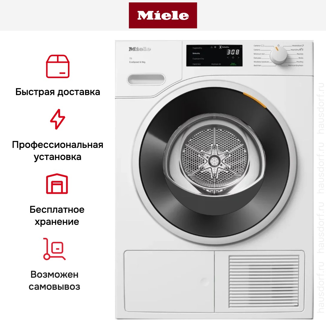 Запатентованная гарантирует согласованную работу и автоматическую очистку теплообменника и фильтра, так что пользователю не нужно беспокоиться и следить за степенью засорения теплообменника ворсом, а затем извлекать и прочищать его вручную, что также занимает значительное время. Таким образом удается поддерживать короткие рабочие циклы для сушки белья из ткани любого вида, а значит, и экономить электроэнергию: срок службы машины при этом не имеет значения. Все сушильные машины Miele, оснащенные технологией EcoDry, относятся к наивысшему классу энергоэффективности А+++.