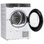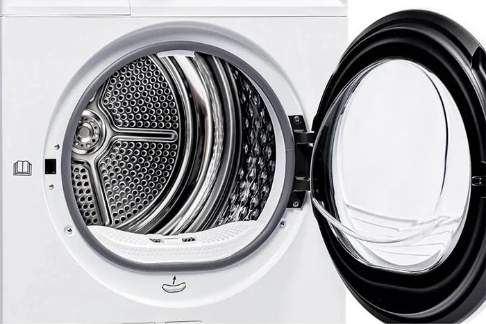 - Тепловой насос — поступающий внутрь воздух нагревается, что ускоряет и улучшает эффективность сушки. Затем он проходит через конденсационный отдел, отдает влагу и сухим повторно возвращается в барабан.