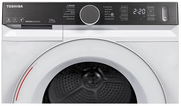 Сушильная машина Toshiba предназначена для домашнего использования, поэтому имеет стандартные габариты и большое разнообразие программ. Так как она устанавливается отдельно, нужно заранее найти достаточно места в помещении.