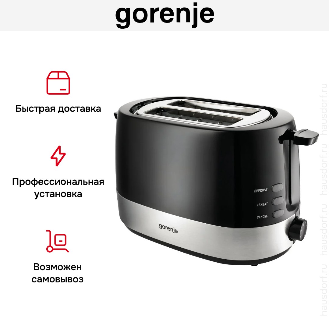 Стильный тостер Gorenje имеет компактный корпус на устойчивых ножках, благодаря которым не пошатывается, даже если хлеб выпрыгивает вверх в конце приготовления. Основной материал, из которого изготовлен прибор, — пластик/ сталь. Его главный оттенок — черный. Простое и понятное механическое управление позволяет быстро разобраться во всех функциях. Простое и понятное электронное управление позволяет быстро разобраться во всех функциях. На корпусе расположены кнопочные+поворотные переключатели для изменения настроек.