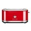 Cтальной корпус с широкими отверстиями и хромированной ручкой регулирования температуры. Прочный, надежный, легко поджаривает большие тосты или выпечку