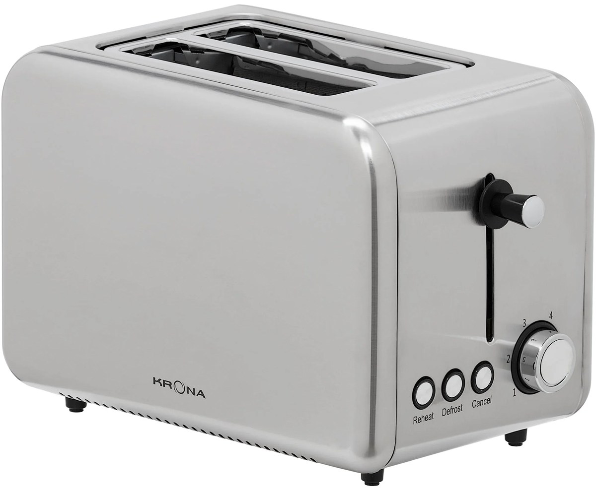 Стильный тостер KRONA имеет компактный корпус на устойчивых ножках, благодаря которым не пошатывается, даже если хлеб выпрыгивает вверх в конце приготовления. Основной материал, из которого изготовлен прибор, — нержавеющая сталь. Его главный оттенок — нержавеющая сталь. Простое и понятное механическое управление позволяет быстро разобраться во всех функциях. Простое и понятное электронное управление позволяет быстро разобраться во всех функциях. На корпусе расположены кнопочные+поворотные переключатели для изменения настроек.