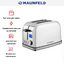 Стильный тостер Maunfeld имеет компактный корпус на устойчивых ножках, благодаря которым не пошатывается, даже если хлеб выпрыгивает вверх в конце приготовления. Основной материал, из которого изготовлен прибор, — нержавеющая сталь. Его главный оттенок — белый. Простое и понятное механическое управление позволяет быстро разобраться во всех функциях. Простое и понятное электронное управление позволяет быстро разобраться во всех функциях. На корпусе расположены кнопочные+поворотные переключатели для изменения настроек. Благодаря небольшому дисплею еще удобнее следить за процессом.