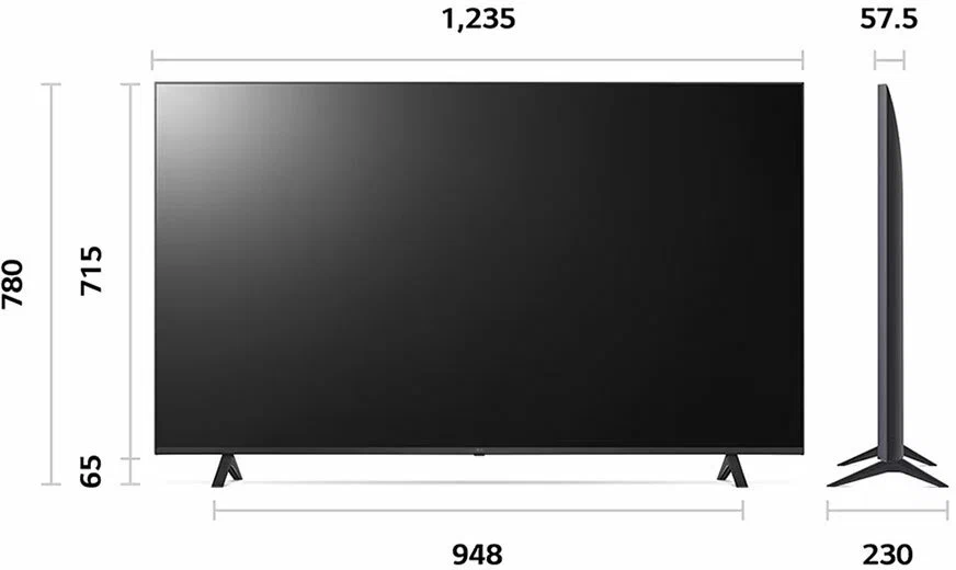Диагональ, ": 55. Цвет: серый. Разрешение, px: 3840x2160. Формат: 16:9.