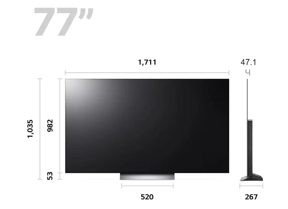Тип экрана: OLED. Диагональ, ": 77. Цвет: титан. Разрешение, px: 3840x2160. Формат: 16:9.