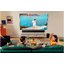 Большую панель 77 дюймов 2023 года выпуска отличает корпус серебристого цвета и ультратонкий профиль 2.5 см. Есть установка на тумбу или на стену по стандарту VESA 300×300. Антибликовое покрытие и широкий угол обзора 178/178° поддерживают комфортный просмотр днём, в комплекте предусмотрен пульт ДУ.