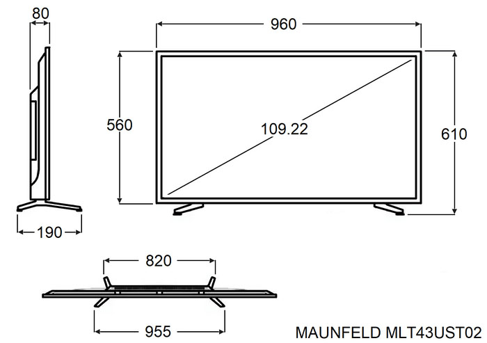 Телевизор Maunfeld MLT43UST02 — это современное решение для тех, кто ценит чёткость, насыщенность и комфорт при просмотре любимого контента. Модель оснащена 43-дюймовой LED-панелью с прямой подсветкой (Direct LED), обеспечивающей равномерное распределение света и отсутствие локальных затемнений. Такая технология способствует более точной передаче оттенков и глубокому воспроизведению тёмных сцен без потери деталей.