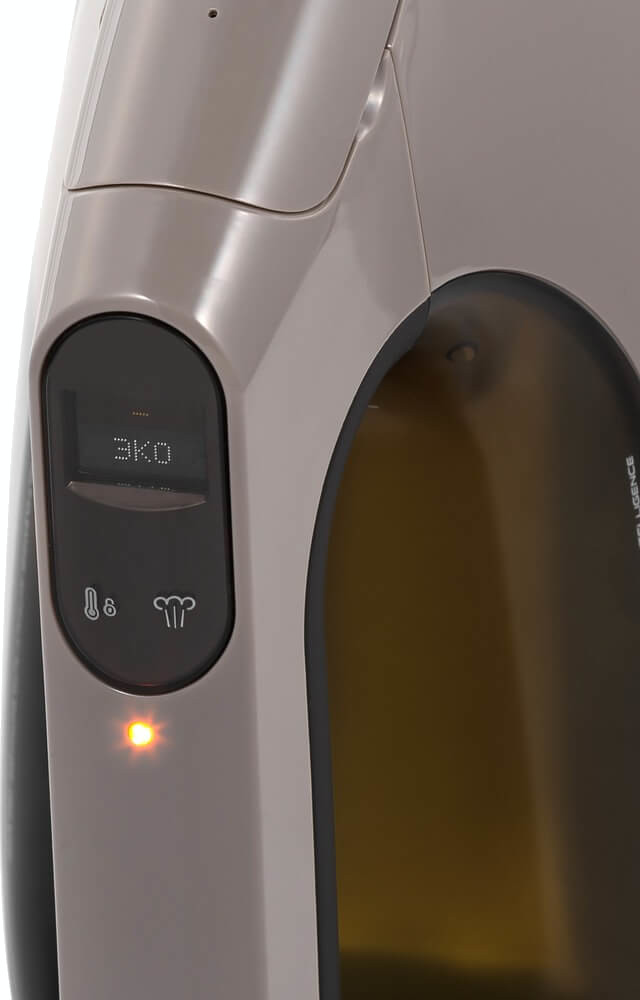 Индикация степени нагрева утюга — полезная опция, которая помогает определить температуру глажения, предохранить от повреждения белье и одежду, а также понизить риск ожога. Индикатор нагрева, который располагается на панели управления, автоматически отключается, когда утюг остаточно нагрелся.