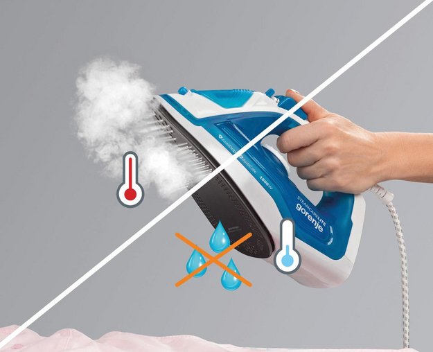 Вертикальное отпаривание — полезная опция, которой оснащаются утюги со встроенным парогенератором. При его использовании не происходит соприкосновения ткани и поверхности утюга, а воздействие на ткань производится при помощи струи горячего пара, который подается под высоким давлением.