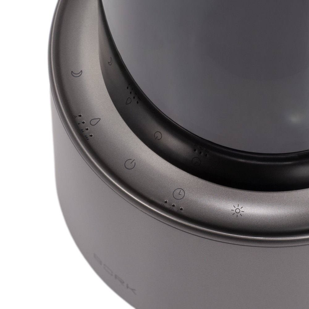 Электронное управление работой увлажнителя воздуха Bork позволяет регулировать параметры одним нажатием кнопки, а информативный дисплей демонстрирует текущие характеристики работы. Отсутствие выступающих регуляторов на корпусе создает лаконичный дизайн.
