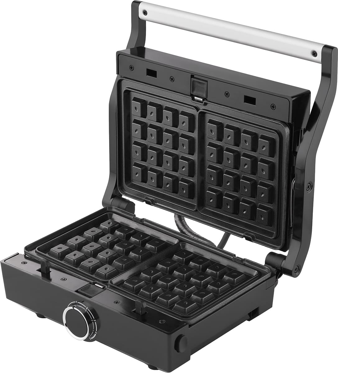 Прибор оснащён нагревательным элементом мощностью 1000 Вт, что гарантирует быстрый выход на рабочую температуру и эффективную теплопередачу. Корпус выполнен из прочного пластика, устойчивого к перепадам температур, а рабочая поверхность — из нержавеющей стали, которая отличается долговечностью, лёгкостью в очистке и безопасностью при контакте с пищей. Ручки также изготовлены из термостойкого пластика, что исключает нагревание во время эксплуатации и обеспечивает комфорт при открывании и закрывании крышки.