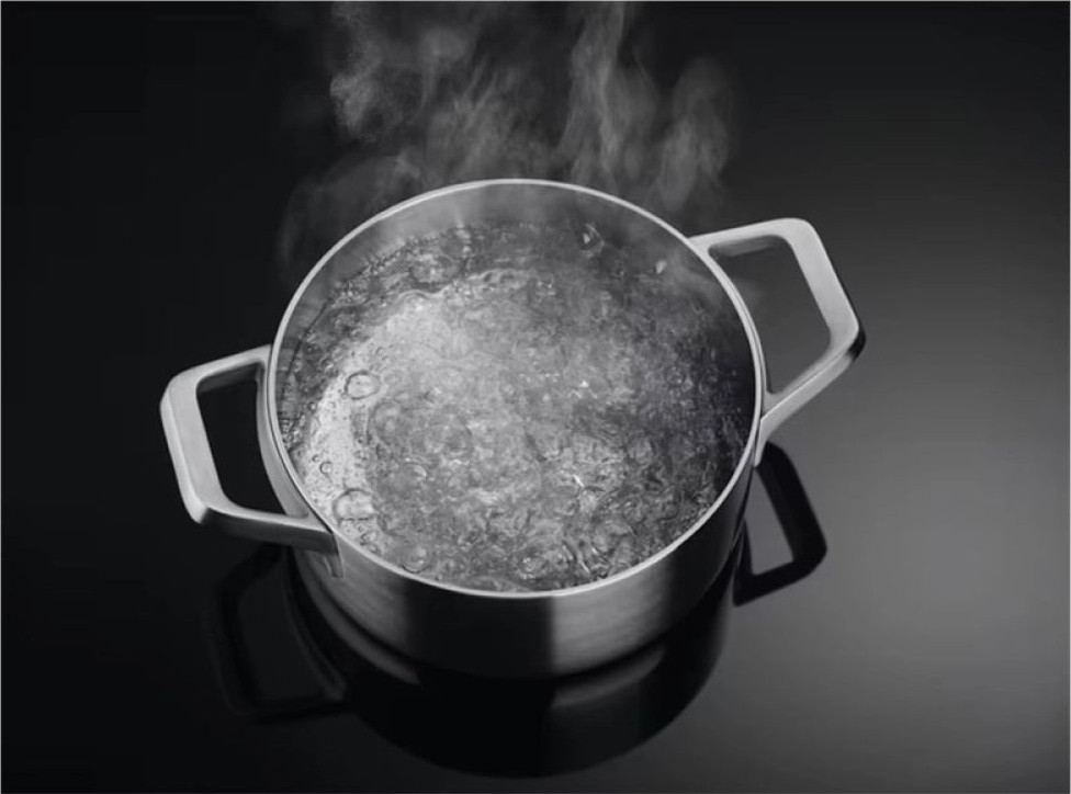 Степень увеличения мощности зависит от изначальных параметров каждой конфорки. Эта функция не только позволяет быстро вскипятить воду: ее рекомендуется использовать для приготовления блюд, требующих быстрой интенсивной обжарки — например, в азиатской кухне или при использовании замороженных продуктов.