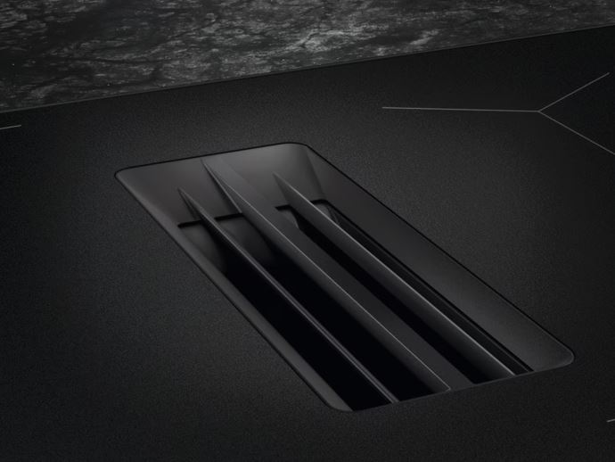 Вытяжка, встроенная в варочную панель — достаточно удобный вариант, позволяющий сэкономить место в кухне. Такая конструкция позволяет лучше улавливать испарения, не давая им распространяться по всему помещению, и способствует более качественной очистке воздуха. Большинство подобных моделей может работать только в режиме рециркуляции воздуха, с удалением капель жира, сажи, неприятных запахов при помощи системы фильтров. Работу в режиме отвода загрязненного воздуха через систему вентиляции организовать довольно сложно, поскольку вытяжка располагается низко над полом. Часто варочная панель находится на кухонном острове, что также мешает присоединению к вентиляции. Еще одна особенность подобных моделей состоит в том, что под варочной панелью нельзя разместить духовку или другую технику, так как место будет занято.