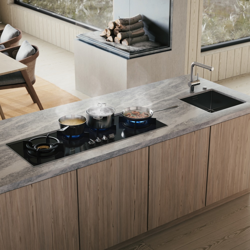 Стандартная ширина устройства составляет около 59–60 см: таковы наиболее востребованные четырехконфорочные модели. Подобный размер облегчает встраивание варочной панели в стандартную кухонную столешницу.