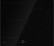 Варочная панель работает на индукционном нагреве — это значит, что повышается температура непосредственно посуды, в которой готовится блюдо. Таким образом промежуточная ступень с предварительным нагревом конфорки пропускается — сокращается время, повышается безопасность. Количество конфорок в этой модели: 3.