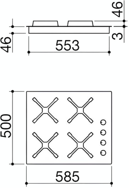 Стандартная ширина устройства составляет около 59–60 см: таковы наиболее востребованные четырехконфорочные модели. Подобный размер облегчает встраивание варочной панели в стандартную кухонную столешницу.