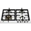 Поверхность сделана из нержавеющей стали, латунные горелки расположены на достаточном расстоянии друг от друга, чтобы работать с техникой было комфортно и безопасно. Конфорки защищены чугунными решетками. Поворотные регуляторы смещены вправо относительно самой большой и мощной зоны — WOK. Она имеет два ряда пламени, благодаря чему можно настроить нужную мощность и температуру под разные блюда.