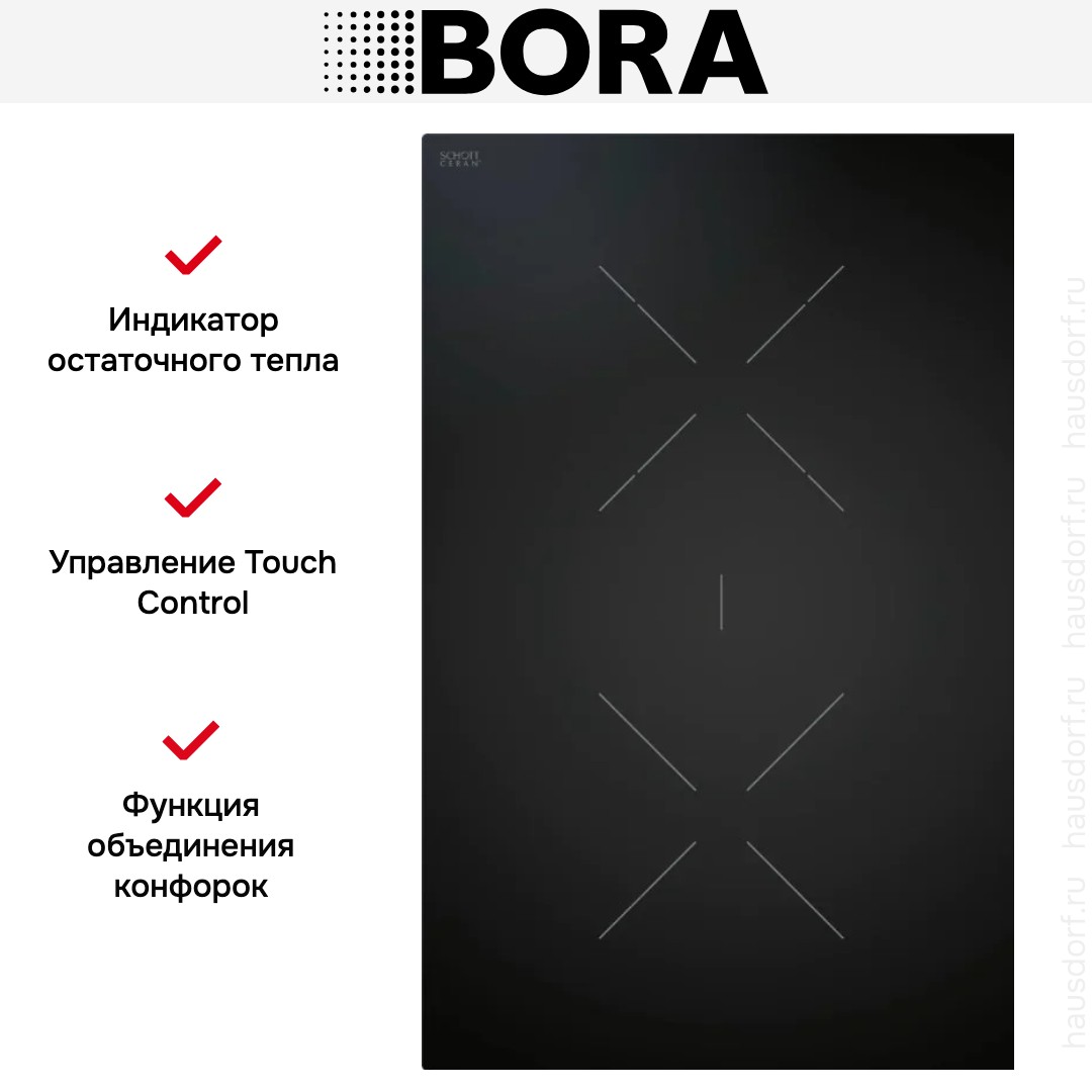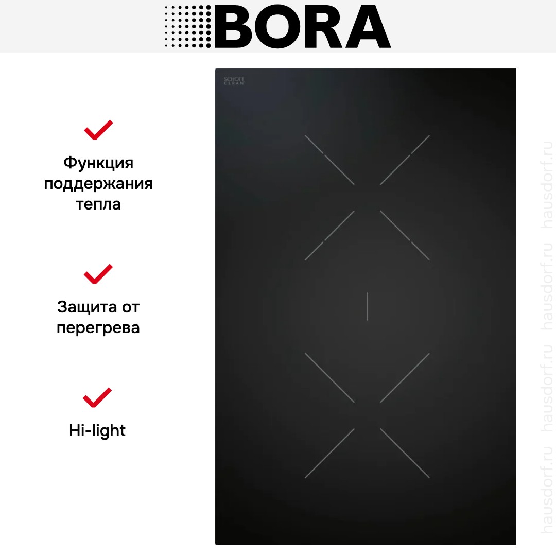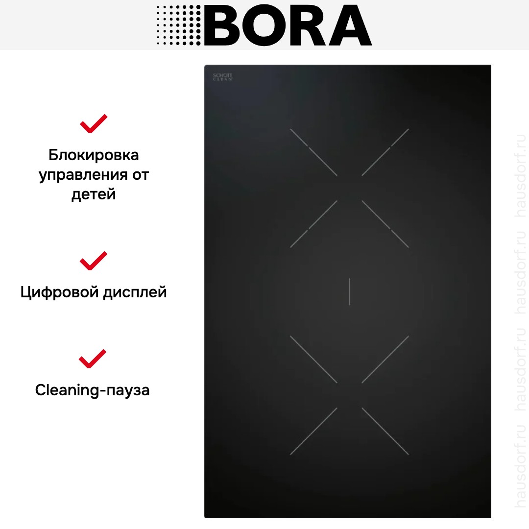 Модель БОРА CKCB входит в дизайн-линейку: Classic 2.0. Цвет — черный. Благодаря отсутствию рамки она отлично впишется в интерьер и не займет лишнее место на столешнице, которое можно использовать для работы. Материал самой поверхности: стеклокерамика. Управление этой моделью электронное. Для переключения уровней нагрева, выбора функций используются следующие переключатели: сенсорные/TouchControl. Продвинутая система контроля за прибором делают его современным и отвечающим на главные запросы покупателя.