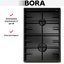 Варочная панель BORA PG11 снабжена двумя газовыми конфорками различного уровня мощности, каждая из которых дополнена защитной системой контроля пламени. Управление устройством осуществляется посредством поворотных регуляторов, размещенных на встраиваемой распределительной коробке. Для упрощения очистки литая решетка для посуды имеет съемную конструкцию.